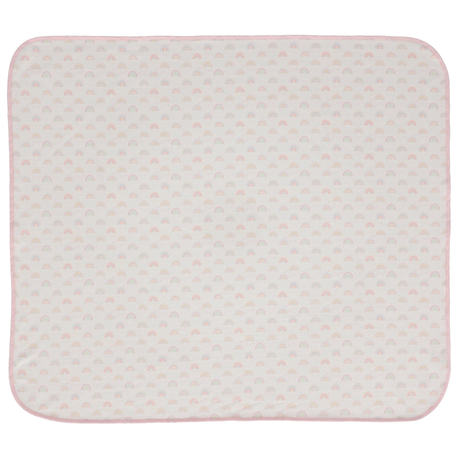 1. Frazada impresa con arcoíris rosas y mamey con toques de amarillo y verde menta, en tejido de punto de 90 x 76 cm. Ideal para cubrir a tu bebé del viento, sol y frío. Nuestra frazada es tela de polo térmica práctica y ligera. Funciona para cualquier época del año. Sirve para hacer taquito al bebé recién nacido, taparlo en el moisés, para el cunecho o para cuando sacas al bebé para el portabebé o carreola.