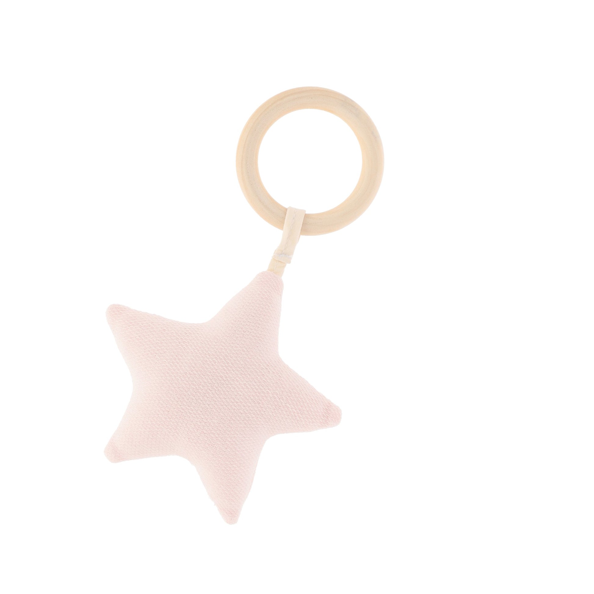 2. Sonaja de estrella de peluche rosa con aro de madera.