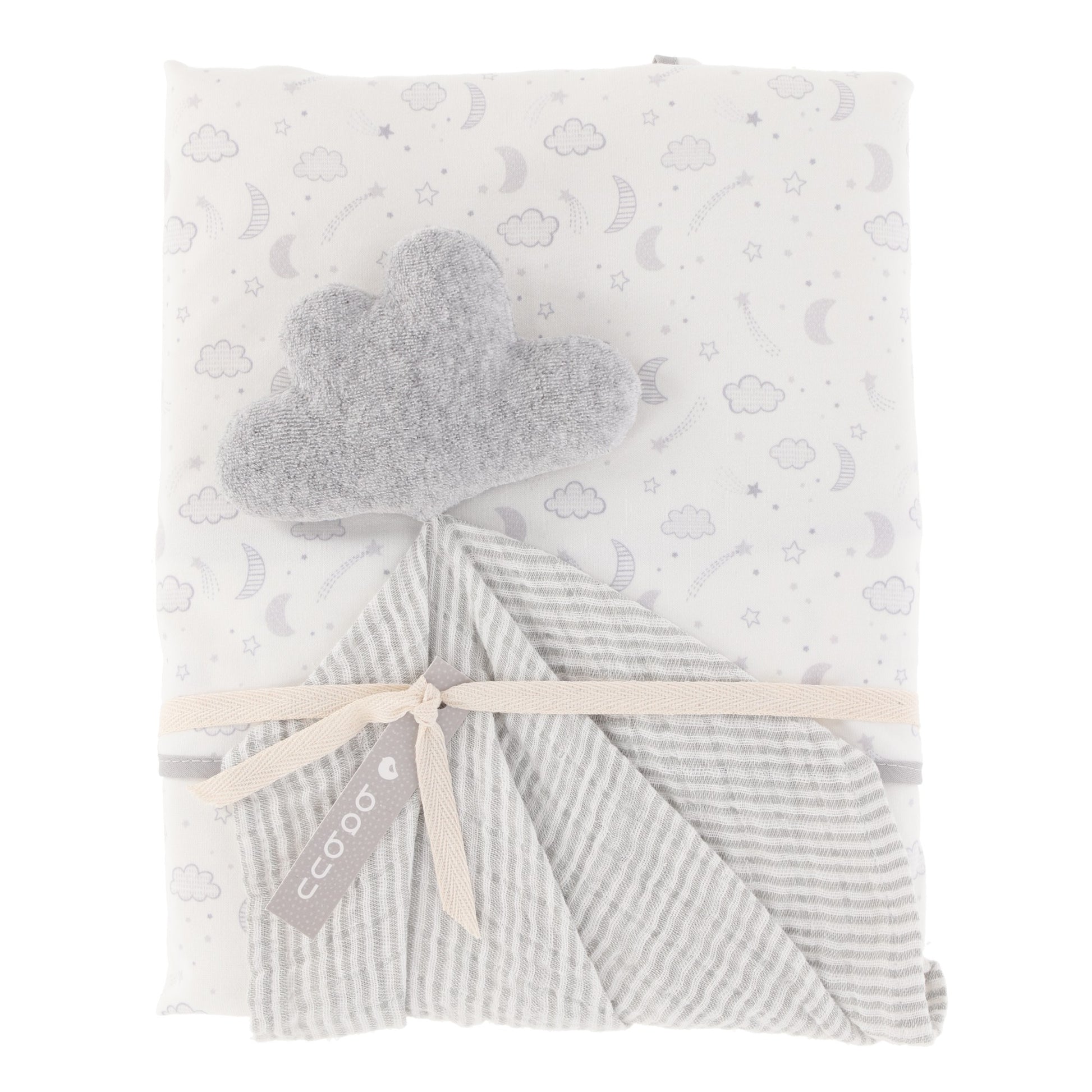 Set frazada con trapo de apego luna y estrella gris