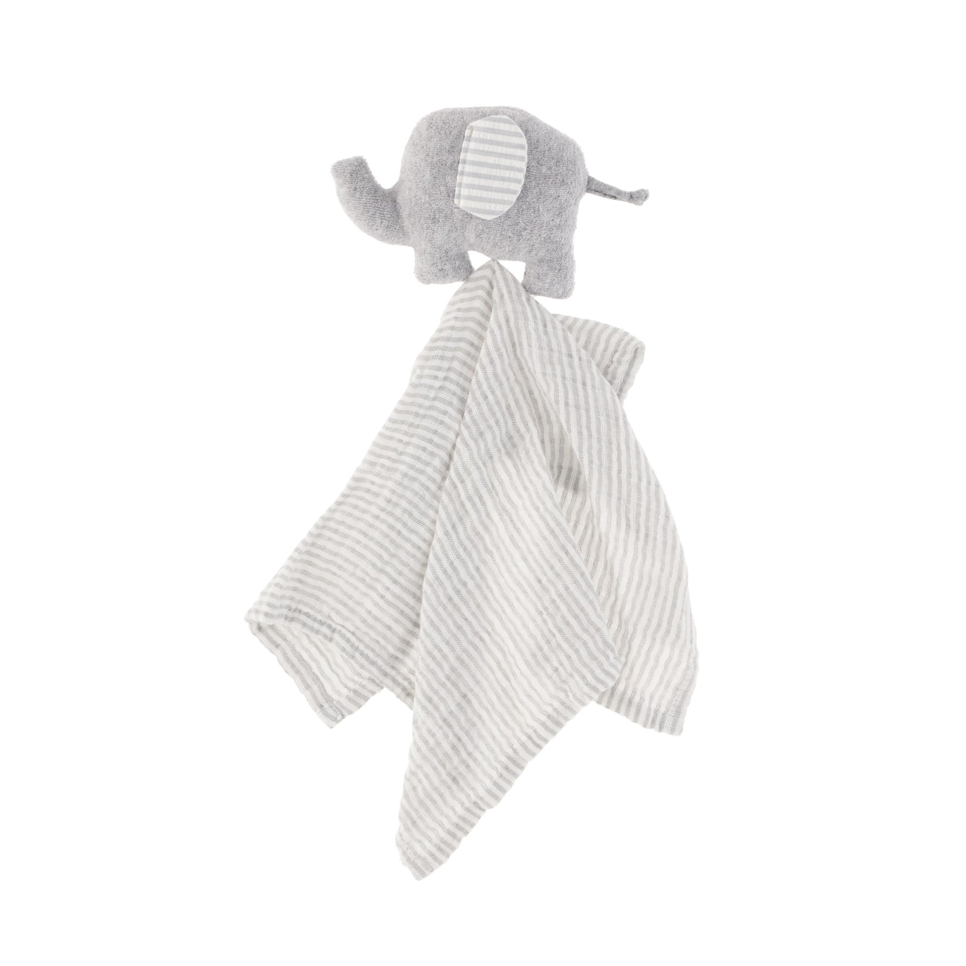 2. Trapo de apego de elefante gris de peluche con cuadro de tela de muselina super suave 100% algodón de rayitas gris con blanco. Es un tierno y útil regalo para cualquier bebé, ta que ofrece seguridad cuando la